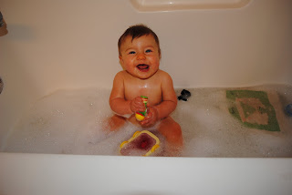 Your still toothless grin melts my heart, and your morning wake up calls for "Momma" warm me to the core. You have a somewhat daring nature, venturing to stand up on Mommy and Daddy's bed, but still have no interest in even taking a solo step. But it will come in it's own time. We're not going to rush it.